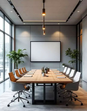 A well-designed conference room creates a professional and productive environment. Our interior solutions focus on combining functionality, aesthetics, and technology to deliver spaces that enhance collaboration and communication.