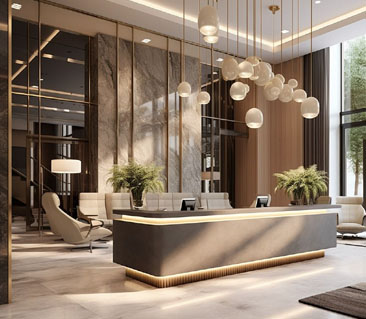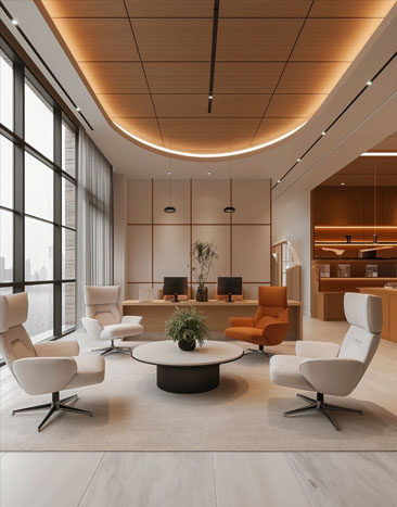 The reception area is the first impression of your business or workspace. Our reception interior solutions are designed to create a welcoming, professional, and visually appealing environment that reflects your brand and style.