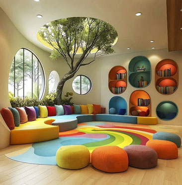 A well-designed play area encourages creativity, fun, and safe recreation. Our play area interior solutions focus on creating engaging, safe, and vibrant spaces for children and adults alike, whether in homes, schools, or commercial spaces.