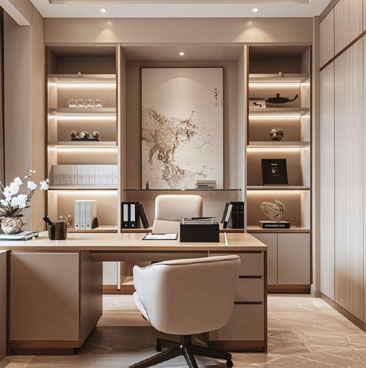 The Managing Director’s room reflects leadership, professionalism, and the identity of the organization. Our MD room interior solutions are designed to create a sophisticated, comfortable, and functional workspace that supports decision-making and executive efficiency.